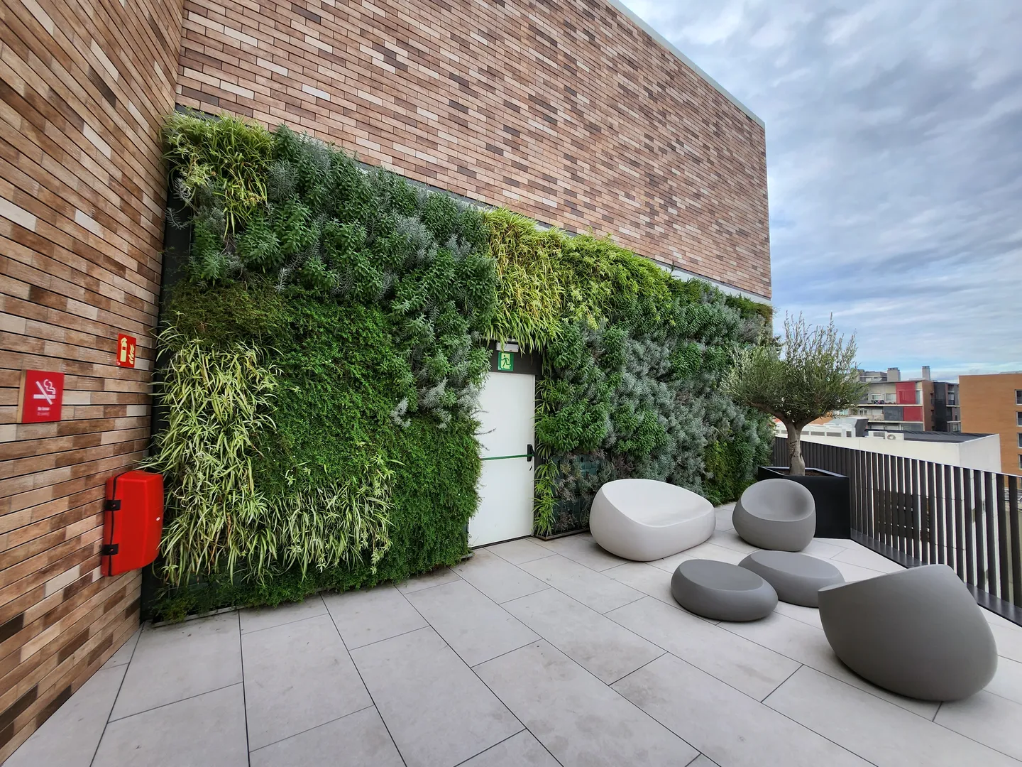 También integramos soluciones de jardinería vertical, ideales para embellecer muros y fachadas, mejorar la calidad del aire y aumentar la biodiversidad en espacios reducidos. Asimismo, construimos cubiertas verdes extensivas e intensivas, transformando tejados en superficies vegetales que mejoran el aislamiento térmico, gestionan el agua de lluvia y aportan un alto valor estético y ecológico a los edificios.